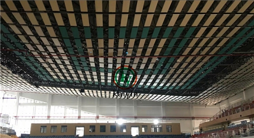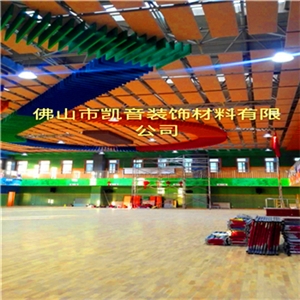 凱音吸聲體是專用于體育館空間吸聲裝飾作用的功能性裝飾材料,是一種分散懸掛于建筑空間上部,用以降低室內(nèi)噪聲或改善室內(nèi)音質(zhì)的吸聲構(gòu)件??臻g吸聲體具有用料少、重量輕、投資省、吸聲效率高、布置靈活、施工方便的特點(diǎn)。